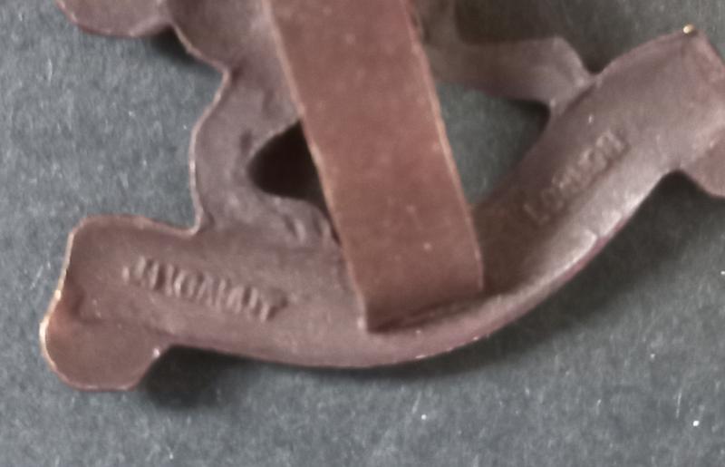 This is a superb example of a - British made - Officers Nederland cap badge in solid messing complete with two blades to the reverse stamped with makers mark J R Gaunt London.