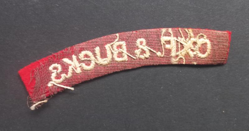 A attractive - albeit regrettably single - un-issued embroided Oxf.& Bucks. (Oxfordshire and Buckinghamshire Light Infantry) shoulder title