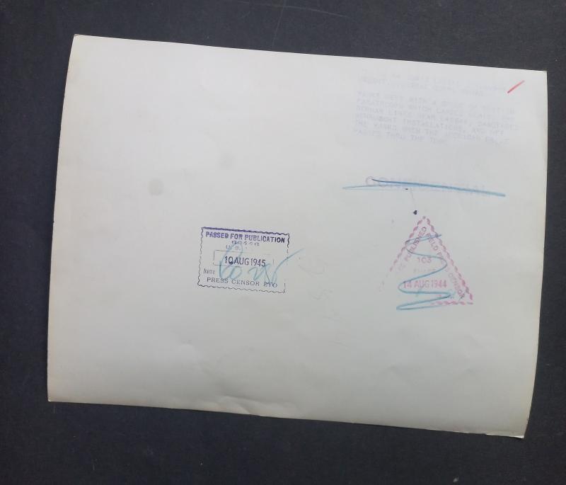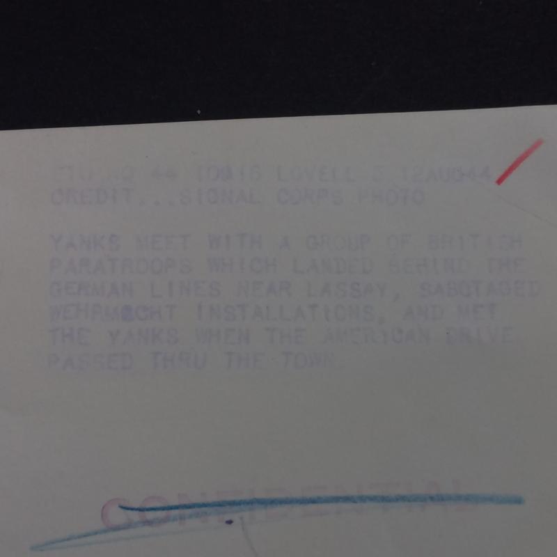This is a good example of a so called official 'Press Release' large 25.9cm x 20.2cm photograph released by the US Signal Corps showing British S.A.S. (Special Air Service) troops meeting up with American troops some were in France, August 1944.
