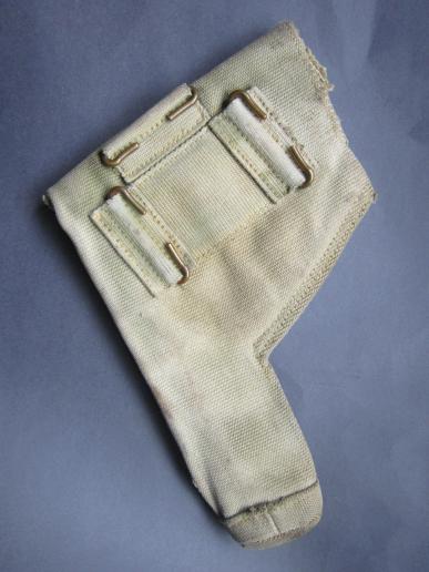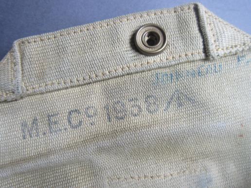 This is a neat example of a nicely used and issued so called 'left behind' '37 pattern MECo (Mills Equipment Company) 1938 dated webbing revolver holster. This holster I found a couple of weeks ago on a small fair in Belgium. This '37 pattern webbing revolver holster is nicely used and must be and is certainly a so called 'left behind' item from the Dunkirk Campaign from 26 May to 4 June 1940. The Mills Equiment Company, MECo for sort, is one of the well known pre great war manufacturer of army webbing equipment. This 1938 dated webbing holster is in a nicely used and issued condition and difficult to find these days.