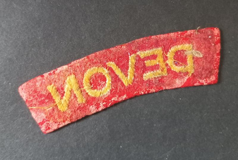 A nice - un-issued standard embroided - Devonshire Regiment shoulder title