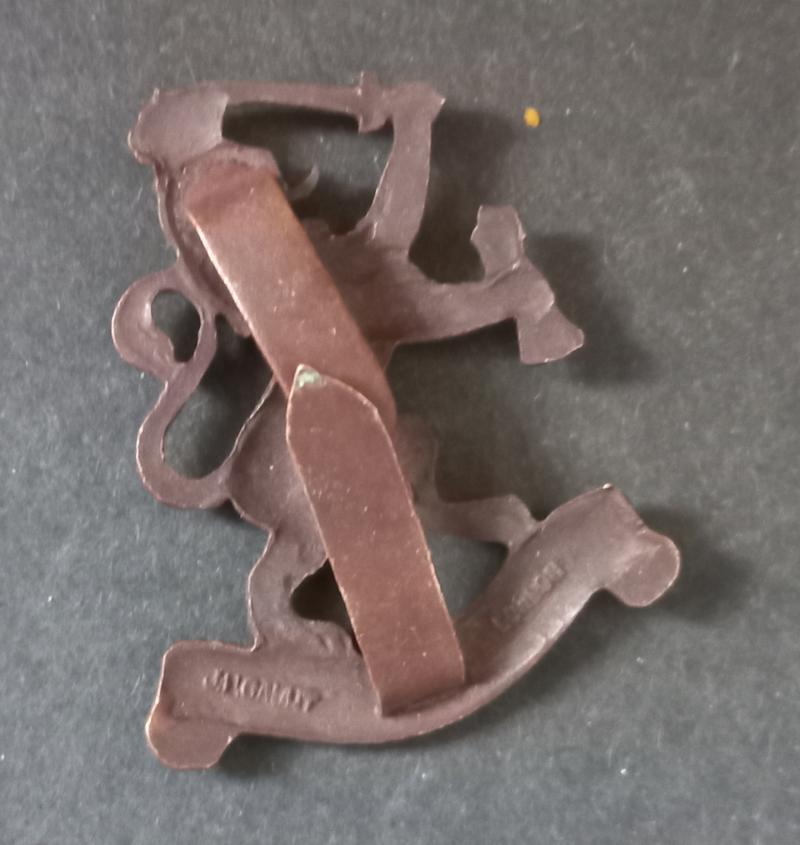 This is a superb example of a - British made - Officers Nederland cap badge in solid messing complete with two blades to the reverse stamped with makers mark J R Gaunt London.